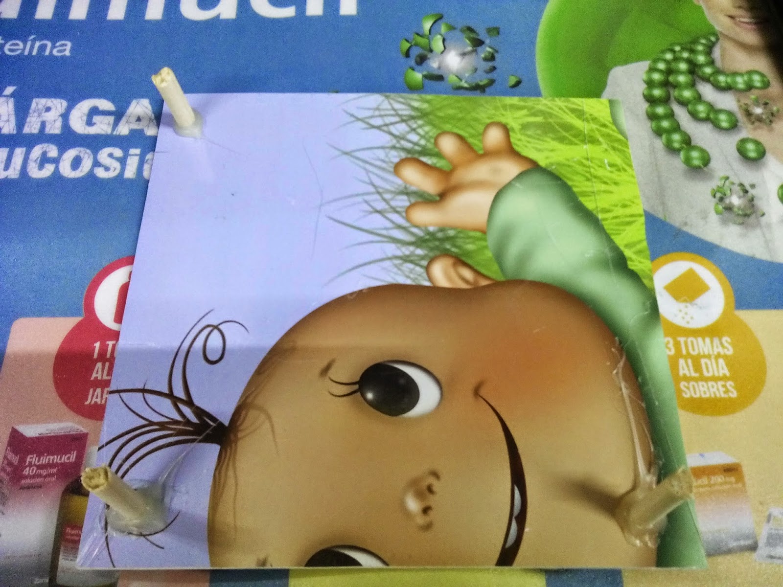 Primeramente, en una lamina plastica de 6×6 pulgadas que tenia de un expositor, pegué con la pistola de silicona 4 barritas de madera de unos 2cm de alto en las esquinas.