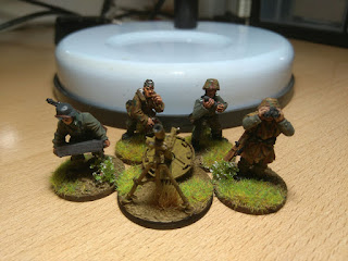 -2 Equipos de francotiradores regulares (50 puntos cada uno), aunque otra combinación puede ser de un equipo francotirador y una unidad de apoyo no mas cara de 50 puntos (5 fusileros, 1 oficial regular con escoltas y rifles, 1 equipo de ametralladora media, etc.). Aunque recomiendo que sean 2 francotiradores, y que apoye alguna unidad adicional. ¿Por qué francotiradores? Sencillo, mas alcance que la mayoría de las unidades de infantería, mas difíciles de cazar y con la posibilidad de seleccionar a los suboficiales de las escuadras enemigas.