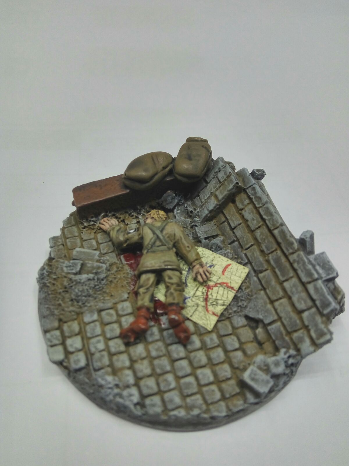 En primer lugar os presento esta peana de la serie de Stalingrado con la que hice un marcador de objetivo para mis paracaidistas de la 101AB. La peana tiene 60mm, y es bastante buena para colocar equipos de MMG, francotiradores e incluso algun pequeño diorama para los oficiales.