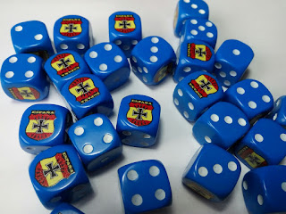 Los que hayáis jugado conmigo sabréis que me gusta tener juegos de dados personalizados para cada ejército, desde la 101 aerotransportada, a los japoneses, pasando por los soviéticos. El principal problema (que me reconcomía cada vez que jugaba) eran los dados para mi División Azul, y aunque jugaba con unos dados de la Wermacht, no es lo mismo.
