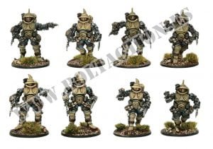 Centuriones: 28GBP. 9 infantes pesados con rifles de asalto. Para mi gusto espectaculares. Esperamos que hayan solventado el problema con las líneas de impresión 3D que se aprecian en algunas partes de las miniaturas del blister de muestras que sacaron, nada grave, pero para lo que cuestan podrían vigilar esos detalles.