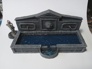 Anoche me puse a pintar mas cosillas de las que adquirí en las Hispania Wargames, entre lo que tenía a mano escogí las dos fuentes de Valquiria Studio que siempre me llamaron la atención. Por si no conocéis a Valquiria Studio, es un fabricante jienense de escenografía principalmente centrado en elementos acuáticos o líquidos. Aunque tienen gamas de marcadores y elementos de escenografía mas orientados a otros juegos fantásticos o de ciencia ficción, hay ciertas cosas en catalogo que son totalmente genéricas, como las fuentes, peanas, los ríos (que han dejado de fabricar 🙁 ), o los lagos y estanques, de los que escribiremos en un futuro. Quizás veamos algo mas especifico para Bolt en un futuro, al menos se lo sugerí en las Hispanias, jejeje.