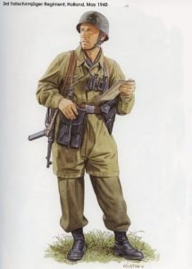Lo primero que vamos a hacer es investigar un poco acerca de la uniformidad de esta unidad. Según Wikipedia hasta 1942, el uniforme estaba basado en el modelo alemán. Luego fue sustituido por otros modelos verdes oscuros, con bandoleras y bolsillos adicionales, más adecuados a los paracaidistas.