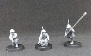 3 Paracaidistas. Artillero y cargador de LMG y paracaidista con mastil para bandera.