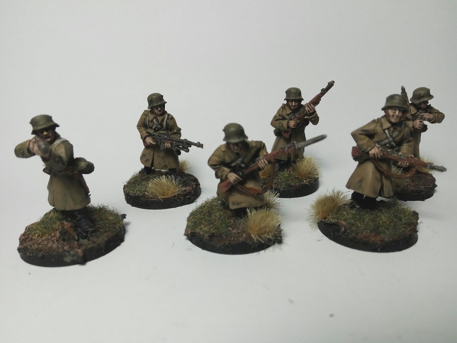 La verdad es que tenia pensado en este puente haber pintado un poco mas (bastante mas, de hecho), pero entre unas cosas y otras me fue imposible. No obstante si que logré pintar 10 polacos de la 10ª brigada motorizada, pese a que en la lista del torneo solo llevare 6, básicamente como relleno de puntos, aunque se de sobra que 6 fusileros atrincherados pueden poner en aprietos a una unidad asaltante e incordiar lo necesario colocando algún que otro marcador de supresión.