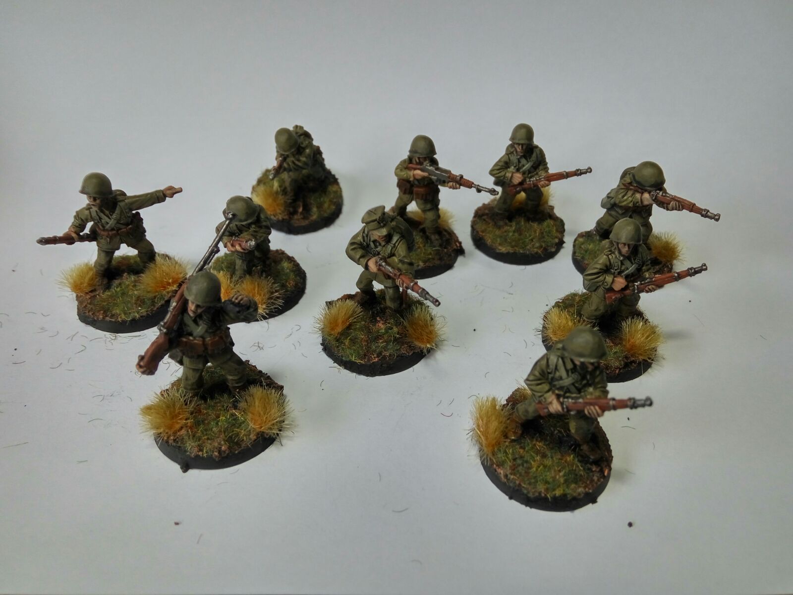 6x Sección infantería de la 10ª Brigada motorizada. 5 Rifles y 1 BAR (Regulares). 65 puntos -Pintada- 10x Sección de infantería, 9 rifles y 1 BAR. (Regulares). 105 puntos. -Pintado- 10x Sección de infantería, 9 rifles y 1 BAR. (Regulares). 105 puntos. -Pintado- 1x Mortero medio con oteador (bisoño). 45 puntos -Pintado-