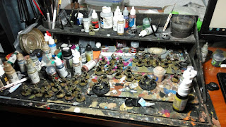 Los polacos sobre la mesa de pintura. Como se puede apreciar, muy ordenada