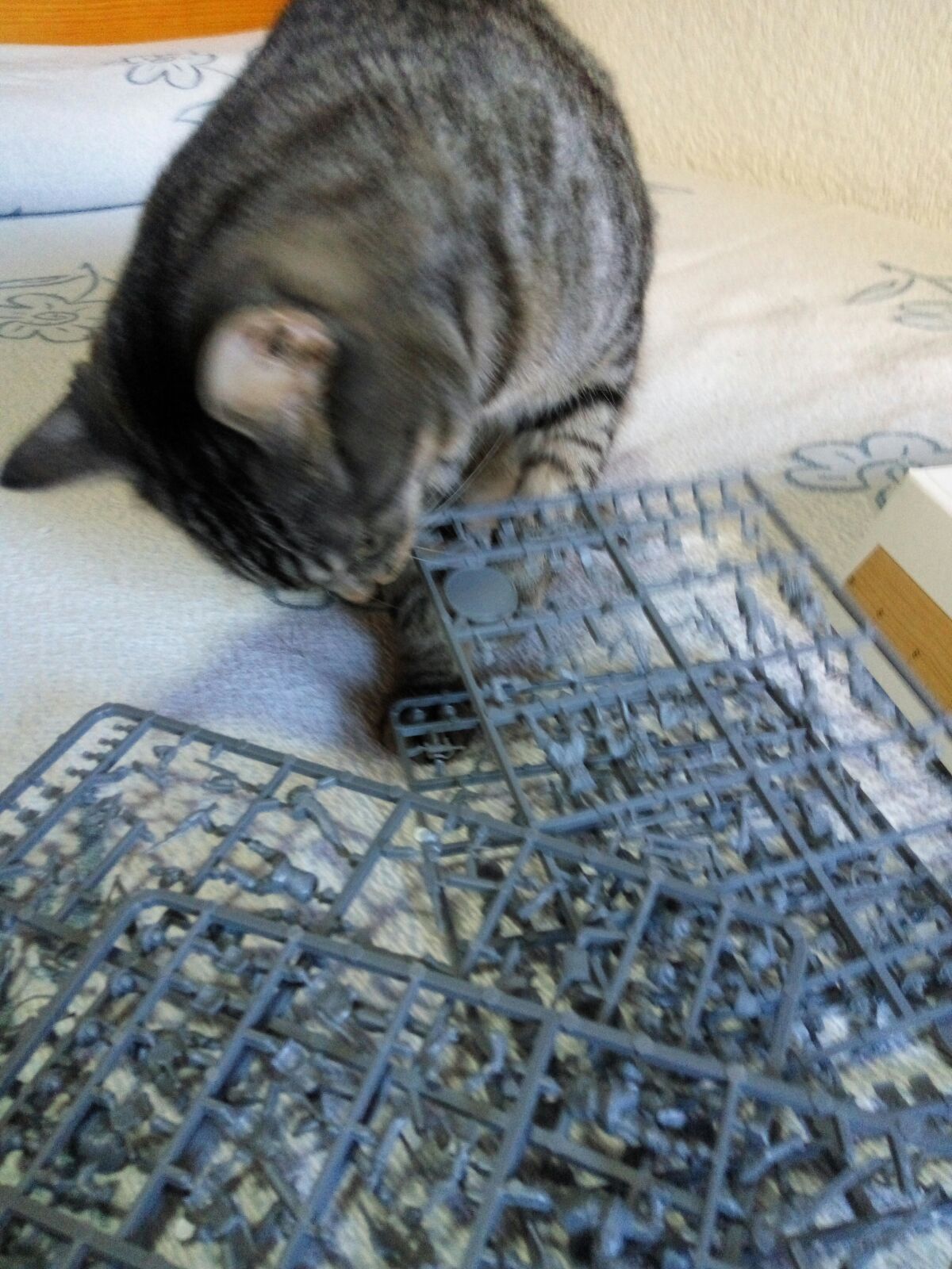 Bilbo Manuel, nuestro beta-tester, comprueba la dureza de las matrices nuevas de plástico. El resultado fue «Miau».